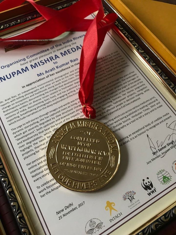 त्यांनी ब्रम्हपुत्रा नदाच्या पात्रातल्या पाण्यावर आलेल्या तैल तरंगांचं फोटो डॉक्युमेंटेशन केलंय. या कामासाठी आणि त्याच्या अभ्यासासाठी आरती कुमार राव यांना भारत सरकारकडून 'अनुपम मिश्रा मेडल' देऊन गौरवण्यात आलंय.